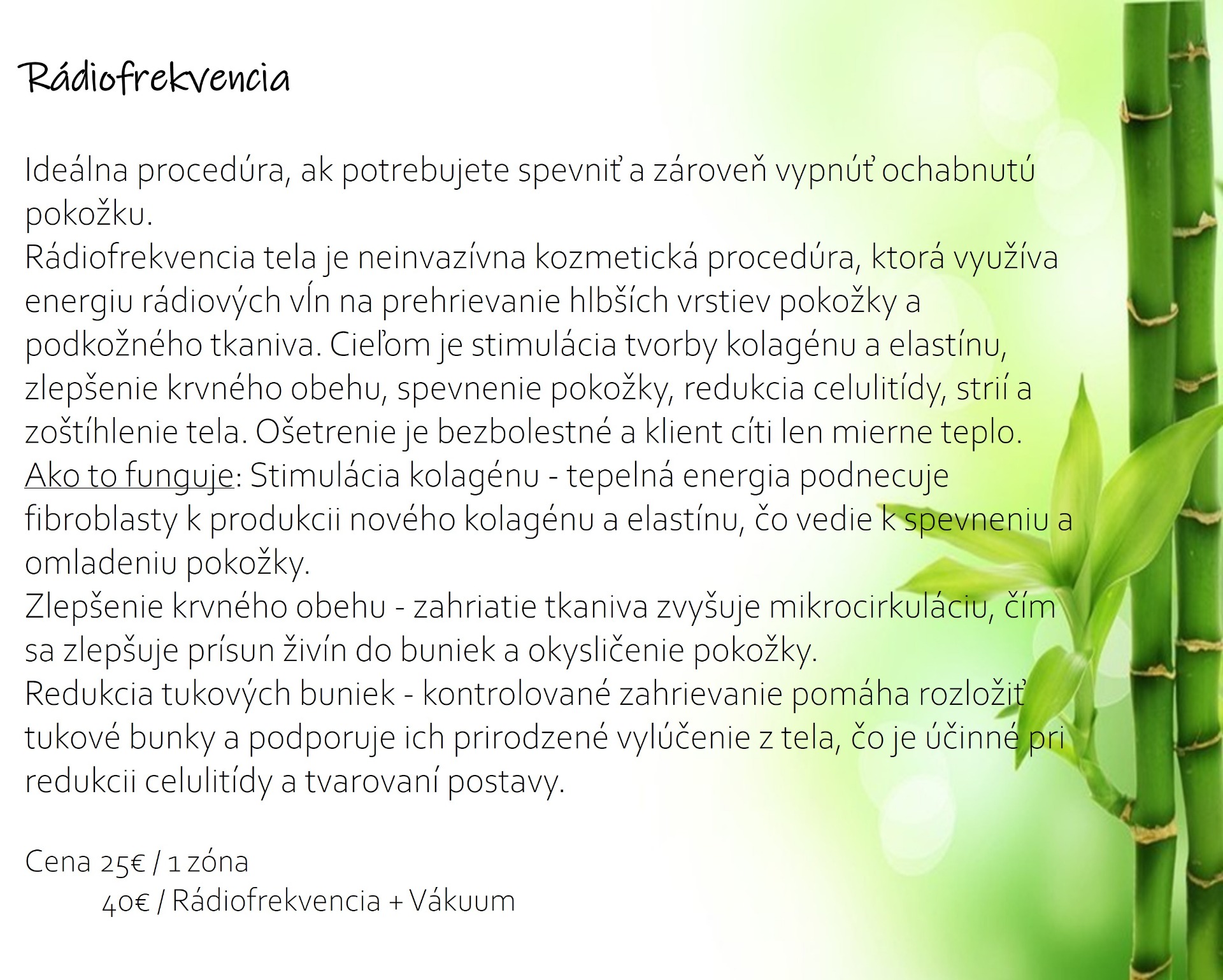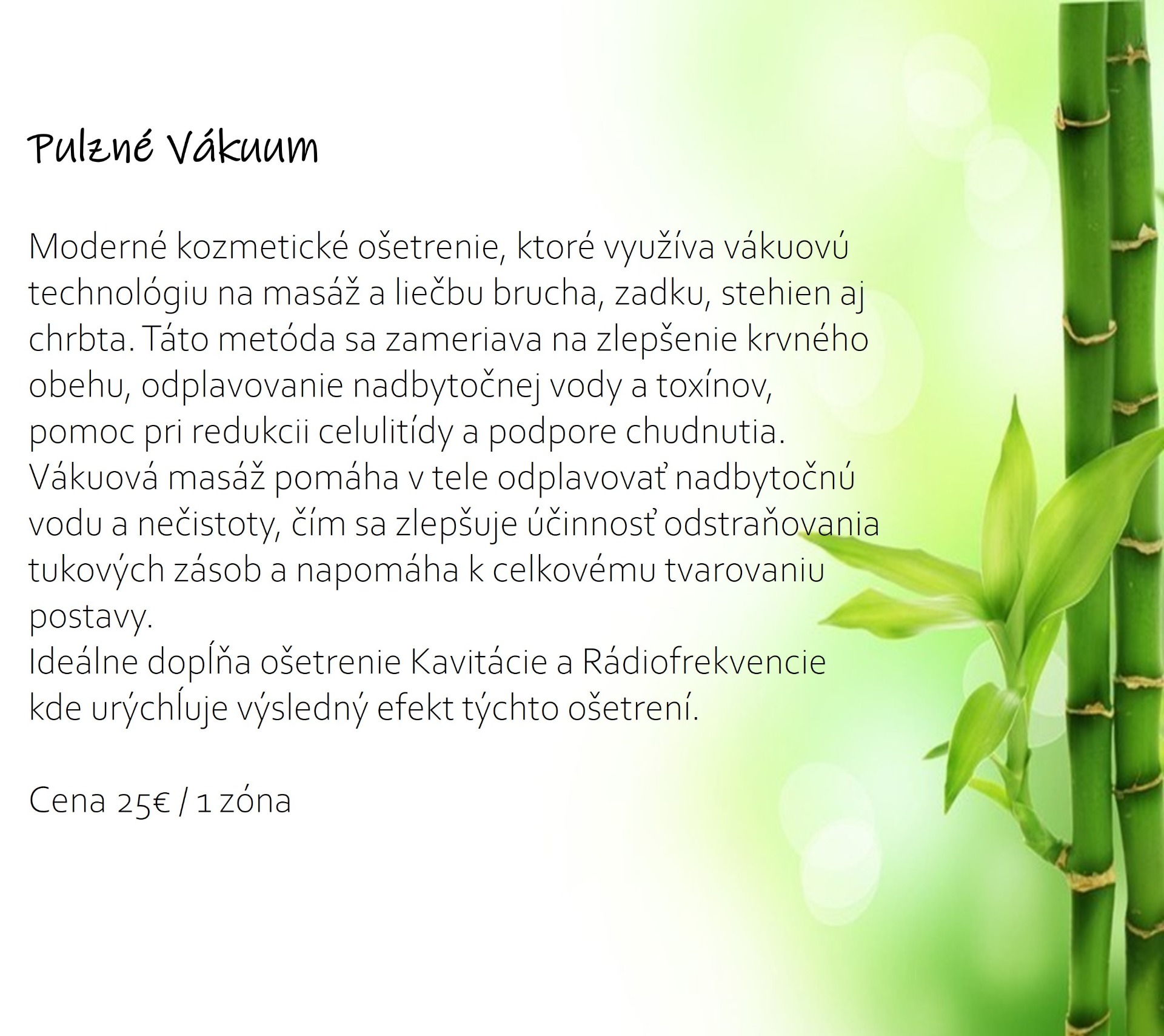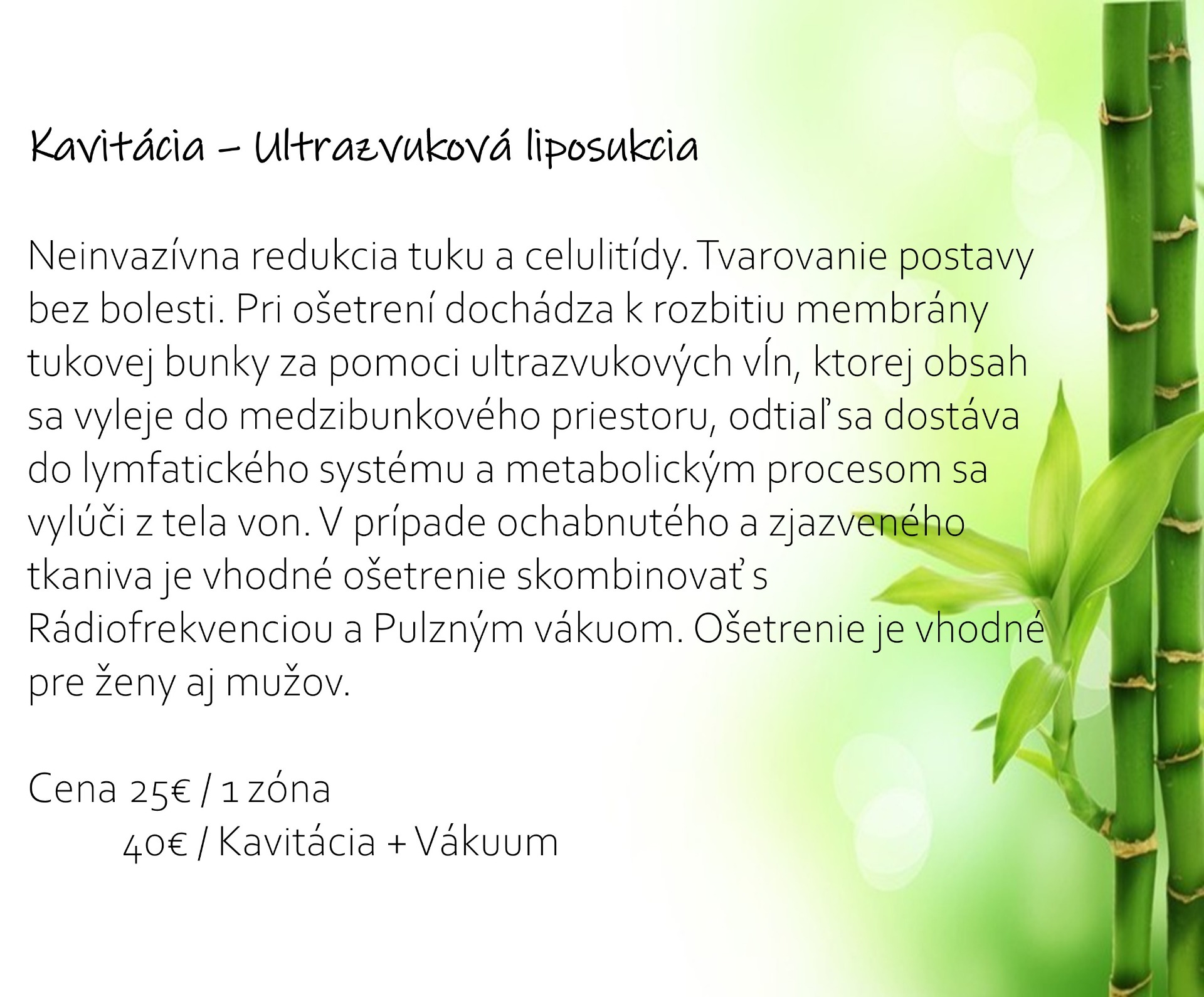 Cena 25€ (kavitácia + vákuum 40€)